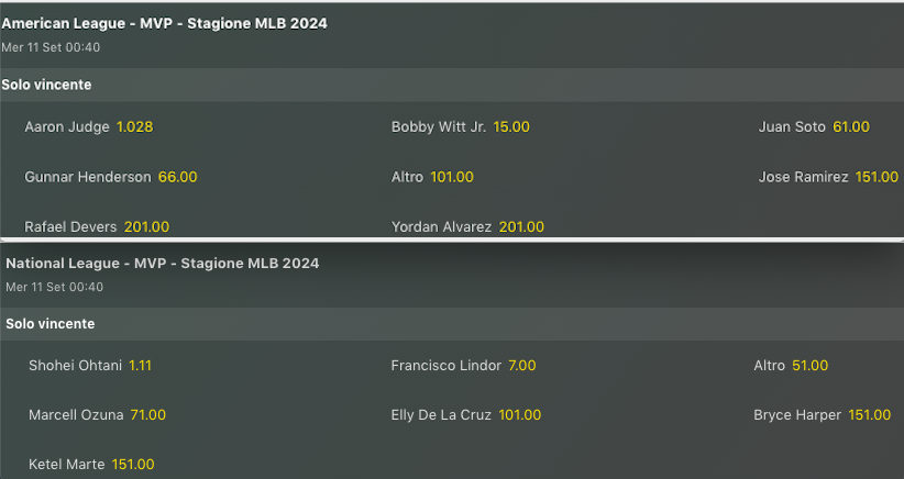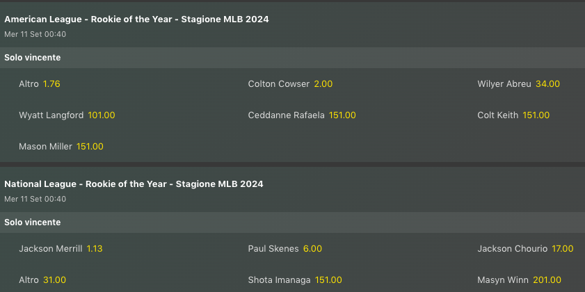 VARIAZIONE ODDS FAVORITI WORLD SERIES