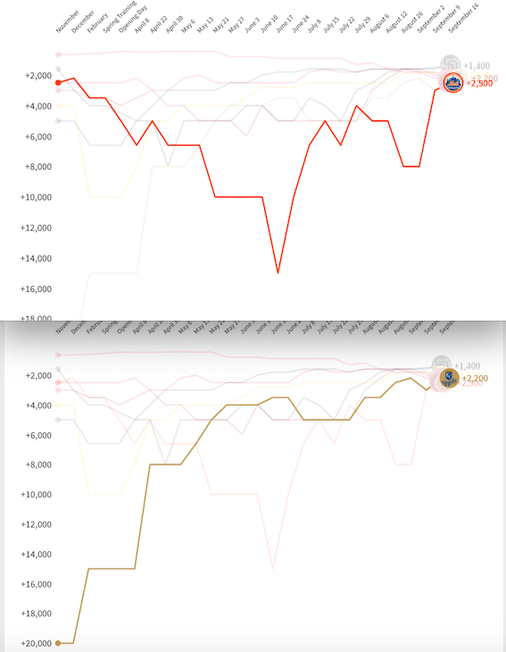 I Milwaukee Brewers si confermano miglior squadra come rendimento nelle scommesse con +15.36 unità di profitto mentre dietro i San Diego Padres (+12.68) scavalcano i Cleveland Guardians, come i NY Mets (+9.61) superano gli Arizona Diamondbacks che rischiano di mancare i playoffs per colpa di un andamento troppo altalenante. Dietro crescono anche qui i Detroit Tigers con +5.26u.