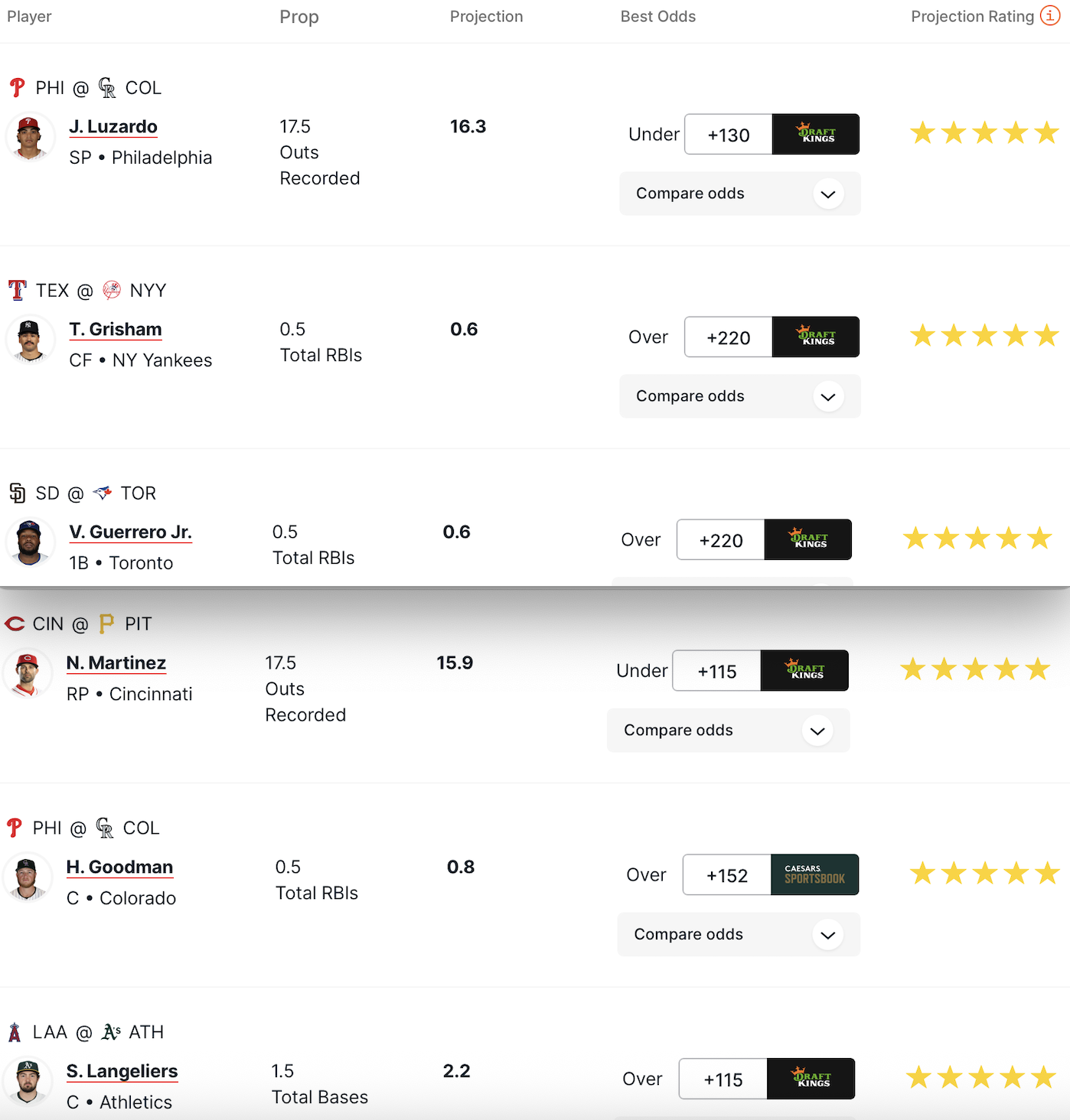 Vediamo le stime e le previsioni più interessanti per le principali prop bet, dai pitcher con strikeout e out, ai battitori.