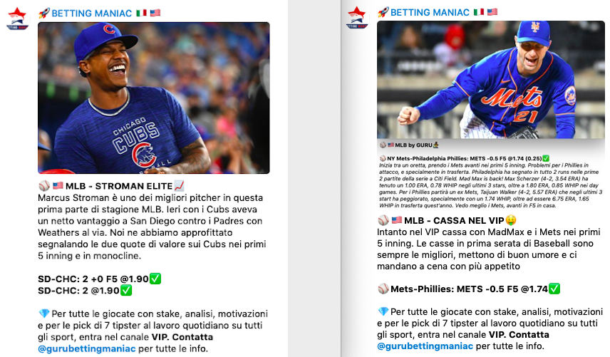 Puoi seguirci sia su TELEGRAM che su INSTAGRAM, ma anche sul nuovo sito di BETTING MANIAC dove trovi tanti contenuti didattici sul betting MLB e i dati statistici del Metodo F5.