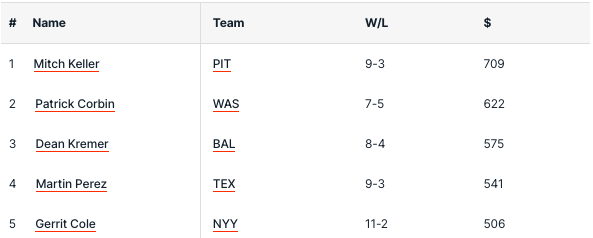 Tra i pitcher, il lanciatore partente che sta facendo guadagnare più gli scommettitori è Mitch Keller che con Pittsburgh ha un record personale di 9-3 che vale +7.09 unità. In 2° posizione a sorpresa Patrick Corbin (7-5, +6.22) e completa il podio Dean Kremer (8-4, +5.75). Come singole vittorie nessuno è già arrivato alle 9 di Shane McClanahan con Tampa (segue Nathan Eovaldi a 8) che è anche il 2° migliore come ERA (2.02), dietro al solo Bryce Elder (1.92 ERA) di Atlanta, poi un sorprendente Eduardo Rodriguez (2.13 ERA) al terzo posto. A seguire Sonny Gray (2.15) e Framber Valdez (2.16).