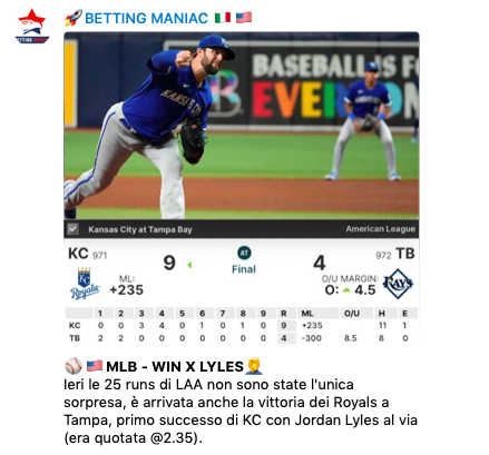 Puoi seguirci sia su TELEGRAM che su INSTAGRAM, ma anche sul nuovo sito di BETTING MANIAC dove trovi tanti contenuti didattici sul betting MLB e i dati statistici del Metodo F5.