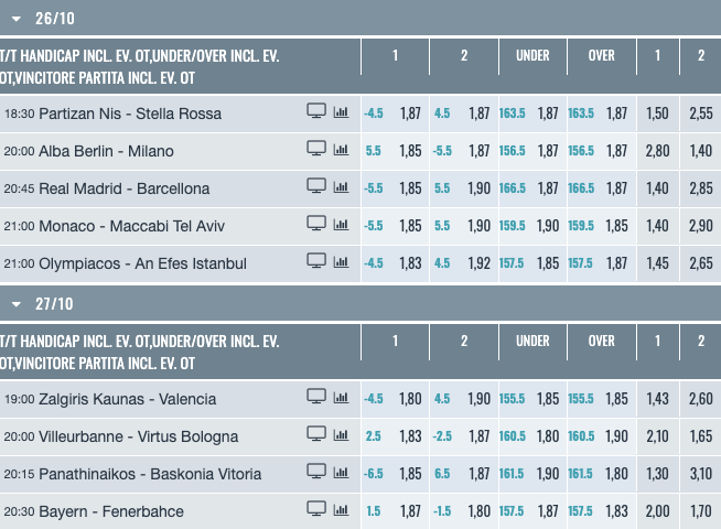 Vediamo la comparazione delle migliori quote sul mercato italiano per la vittoria di questo match di Eurolega.