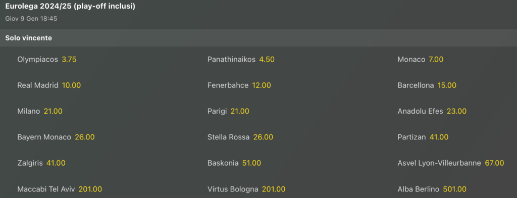 Quote Antepost: ultimi aggiornamenti Euroleague 2024-2025
