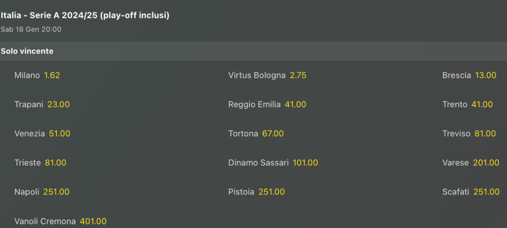 Quote antepost: gli aggiornamenti sul campionato di pallacanestro italiano