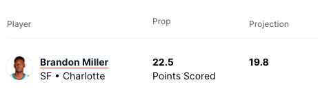 Per gli Hornets nel precedente a LAL il migliore fu Bridges con 20 punti, ma ne segnò 17 anche Brandon Miller, il rookie che sta continuando a crescere e che ha segnato 35 punti contro i Pacers dopo i 28 a OKC, i 29 contro i Bulls e i 29 contro i Knicks. Oggi però proprio Miller ha la linea punti (22.5) che si discosta maggiormente dalle stime che lo vedono sotto i 20 (19.8). Valutate il suo Under punti.