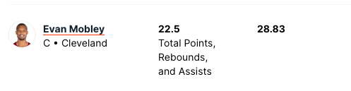 I Cavaliers hanno però una delle migliori difese della NBA, anche se il 13 novembre nella sconfitta 120-132 a Sacramento non sembrava. In quell’occasione i Cavs mandarono ben 7 giocatori in doppia cifra di punti, guidati dai 22 di Donovan Mitchell ma concessero troppo ai Kings, in particolare a Fox con 28 punti e a Sabonis 23 con 10 assist e 9 rimbalzi. Noi ci concentriamo su Evan Mobley che ha una stima di 28.83 Punti+Rimbalzi+Assist, ma una linea di soli 22.5 PRA che ha superato in 7 delle ultime 10 partite.