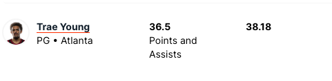 Rimaniamo proprio su Trae Young che per oggi ha una stima di 38.18 Punti+Assist mentre la linea è a 36.5, quindi attaccabile per Over della stella di Atlanta che l’ha superata in 6 delle ultime 8 prestazioni e che anche nell’ultimo scontro dello scorso anno contro LAC (sempre qui ad Atlanta) chiuse con 31 punti e 10 assist, anche se la vittoria andò ai Clippers, trascinati dai 32 di Leonard.