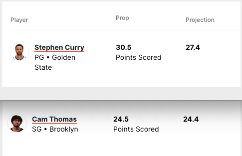 Steph Curry ha segnato 39.2 punti di media nelle ultime 5 partite e altri 37 punti sono arrivati a dicembre, nella vittoria interna 124-120 sui Nets a cui non bastarono i 41 punti di Cam Thomas. Anche oggi saranno loro due i sorvegliati speciali, ma mentre Thomas ha una linea praticamente precisa rispetto alle previsioni (24.4), per Curry c’è valore, ma su Under questa volta. Steph ha una linea di 30.5 punti ma una stima di 27.4.