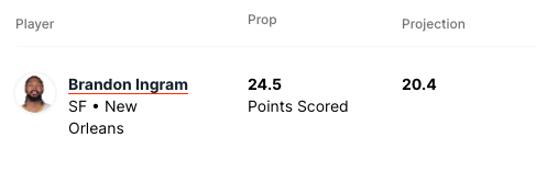 In questa partita abbiamo la segnalazione con la discrepanza maggiore tra linea e previsione, ovvero Brandon Ingram a cui è stata data una linea di 24.5 punti, ma le stime lo danno a 20.4. I Raptors cercheranno di abbassare i ritmi e nelle ultime 15 partite sono state tra le squadre che hanno fatto tirare meno da tre e meno liberi alle SG avversarie. Ingram è O/U 2-5 nelle ultime 7 partite e ha una media stagionale di 21.4 punti, scesa a 19.3 nelle ultime 10.
