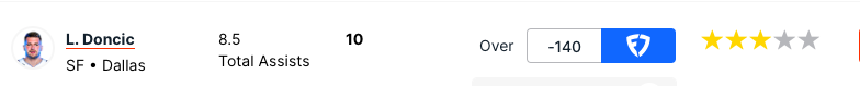 In questa stagione Luka Doncic serve 9.7 assist di media. Lo sloveno arriva da un doppio Under (5-7) ma prima aveva segnato 6 Over consecutivi su questa linea (9-13-10-10-9-9). OKC nelle ultime 10 partite ha tenuto un pace factor abbastanza alto che aiuta Over nei punti totali, ma anche sulle prestazioni e gli assist. Su Doncic si potrebbe giocare anche Over 47.5 Punti+Rimbalzi+Assist @1.95 (proiezione di 49.7 PRA per Doncic questa notte) , ma la stima più solida in base alla linea è quella di DONCIC OVER 8.5 ASSIST @1.71.