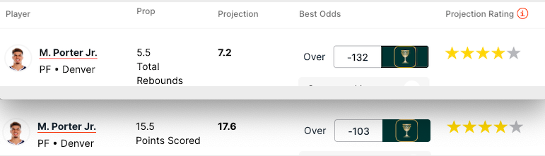 I campioni in carica, che sembravano spacciati dopo le prime 2 sconfitte interne, sono tornati prepotentemente in lizza per difendere il titolo dopo la doppia vittoria in Minnesota, una grande reazione di Jokic e dei Nuggets. Qui le proiezioni ci segnalano MICHAEL PORTER JR OVER 20.5 PUNTI+RIMBALZI @1.83 per un giocatore che ha una stima di 24.8 P+R questa notte per un giocatore da 23.88 P+R di media. Con un Murray non al meglio questo giocatore diventa determinante e la seconda scelta in attacco e a rimbalzo, dietro a Jokic. Solo 7 P+R in gara 4, ma prima aveva chiuso con 25 P+R in gara 3, il 7° Over nelle precedenti 8 partite (27.62 di media). MPJ molto utilizzato con 40.2 minuti di media in campo nelle ultime 5 partite (+7.7 rispetto alle sue stesse medie stagionali).