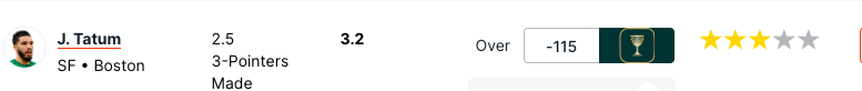 Situazione complicata per i Cavaliers con le spalle al muro, in trasferta al TD Garden, e con ancora in dubbio Mitchell, Allen e anche LeVert. In queste condizioni i Celtics sono nettamente favoriti, e potrebbe sbloccarsi anche Jayson Tatum che arriva da una clamorosa striscia di 10 Under consecutivi su questa linea (2/8 da oltre l’arco in gara 4). Oggi la stella dei Celtics ha una stima di 3.2 triple a referto contro la difesa di Cleveland che rimane solida in area, molto meno sul perimetro visto che è 21° nelle statistiche di 3P% (36.5%) e concede un numero alto alle PF avversarie. Andiamo con TATUM OVER 2.5 3PT @1.83.