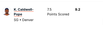 Dopo le prime 2 sconfitte interne che sembravano aver segnato la serie, i campioni in carica di Denver hanno cambiato marcia con 3 vittorie in fila, e questa notte possono chiudere la serie, evitando una gara 7 che comunque si giocherebbe in Colorado. I riflettori sono ovviamente puntati sulle stelle, Nikola Jokic da una parte, Anthony Edwards dall’altra, ma entrambi sono stimati da Under punti, una scommessa comunque pericolosa. Ci spostiamo su uno dei gregari, Kentavious Caldwell-Pope, che ha segnato 16 punti in gara 5, 2° Over nelle ultime 3 partite. KCP ha tirato col 51.0% dal campo nelle ultime 10 trasferte e Minnesota in casa è una delle squadre che manda più in lunetta le starting SG avversarie. Non a caso KCP è finito 8 volte ai liberi (6/8). Oggi ha una stima di più di 9 punti, andiamo con CALDWELL POPE OVER 7.5 PUNTI @1.80.