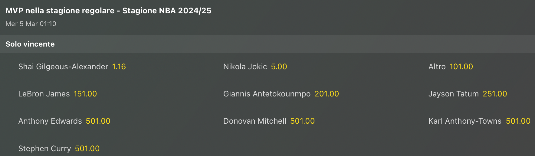 Vediamo gli aggiornamenti delle lavagne per le quote antepost della vittoria finale del titolo NBA, e anche le quote per MVP.
