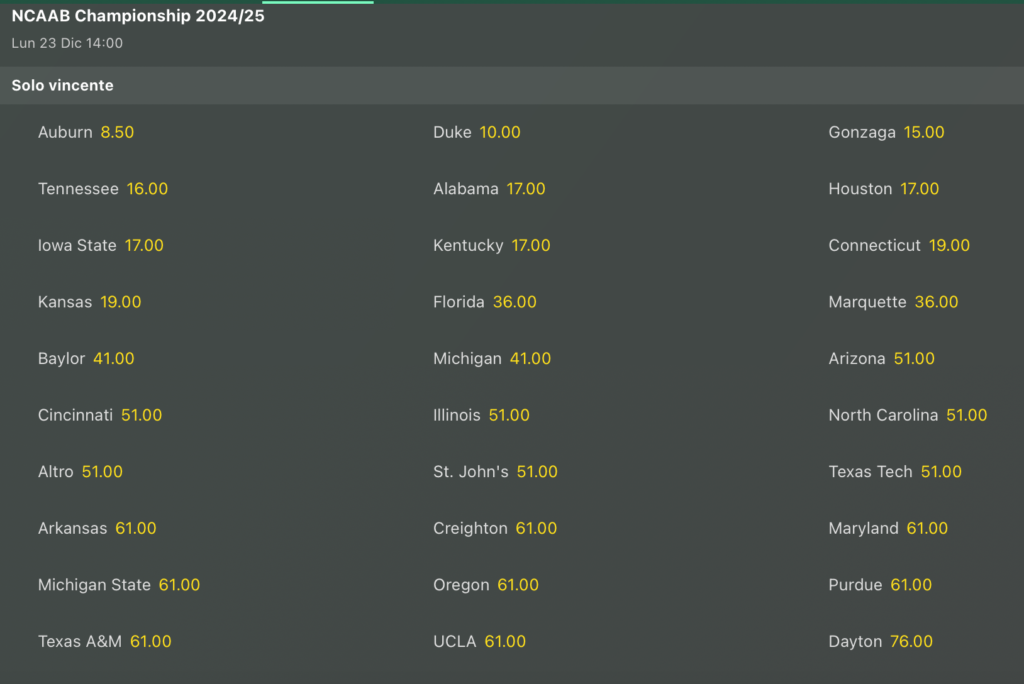 Quote antepost: gli ultimi aggiornamenti sul College Basket NCAAB