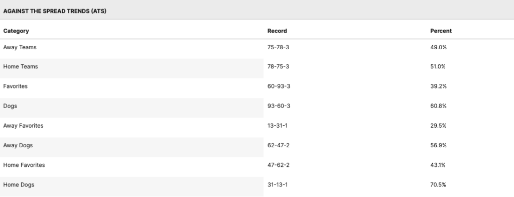 Negli ultimi sette giorni gli underdogs, ovvero gli sfavoriti, hanno fatto felici gli scommettitori con un 60.8% di ATS e in particolare gli sfavoriti in casa hanno coperto il 70.5% degli handicap. Nell’ultima settimana abbiamo visto anche il 58.4% di partite chiuse con Over sulle linee punti totali. Qui sotto trovate tutte le statistiche degli ultimi 7 giorni nella stagione di College Basket: