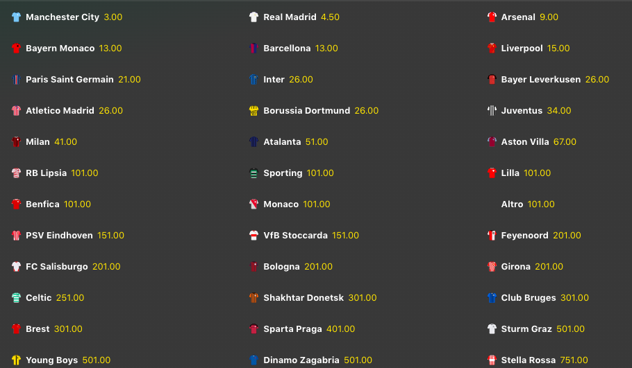 Antepost Champions League 2024-25: Chi vincerà la nuova edizione?