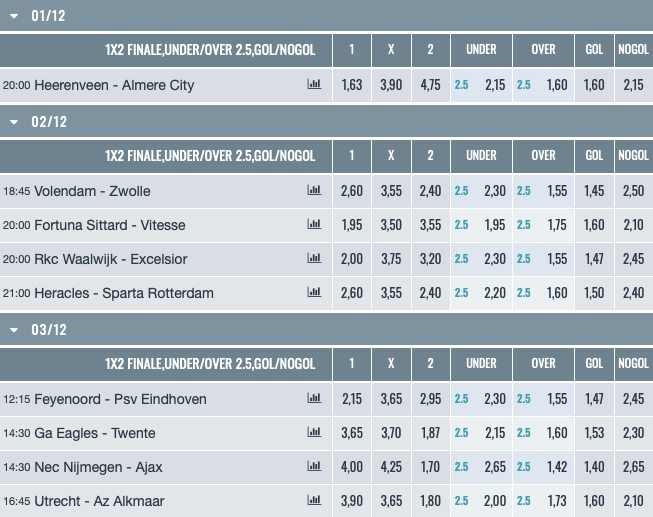 Vediamo la comparazione delle migliori quote sul mercato italiano del big match di questo turno del campionato di calcio olandese.