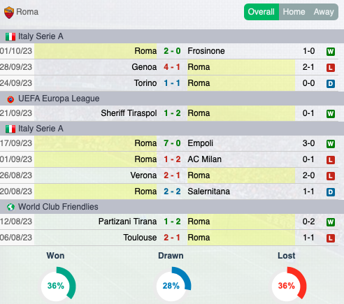I giallorossi in campionato sono ad 8 punti, lontani al momento dalla zona Europa. Hanno raddrizzato il tiro con la vittoria nell’ultima contro il Frosinone, ma contano già 3 sconfitte su 7 turni disputati. L’esordio in Europa League è stato positivo con la vittoria in trasferta in casa dello Sheriff Tiraspol.