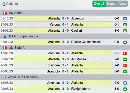 L’Atalanta in Serie A è a 13 punti, dietro ai due gruppetti a quota 14 e 18. Viene dal pareggio in casa contro la Juventus, il primo stagionale. Nell’esordio in Europa League vittoria convincente per 2-0 contro il Rakow. Dovrà fare a meno ancora di Gianluca Scamacca, con l’attaccante che dovrebbe tornare a giocare dopo la sosta nazionali.