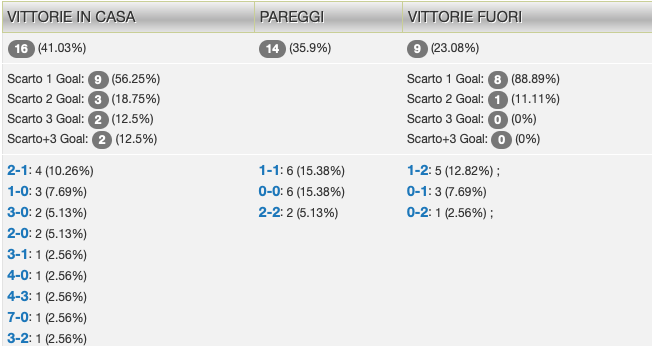 In Spagna il fattore campo rimane importante col 41% di vittorie per le squadre di casa, rispetto al 23% di vittorie in trasferta. Come in Italia, anche nella Liga spagnola abbiamo visto tanti pareggi in questo inizio stagionale, quasi il 36% delle partite si sono chiuse con una X.