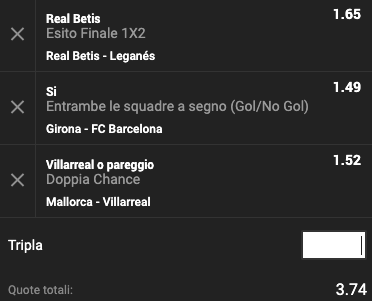 Abbiamo scelto 3 partite del campionato di calcio spagnolo per una multipla quota @3.74.