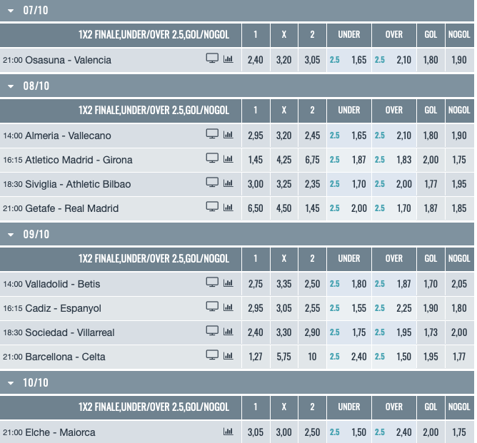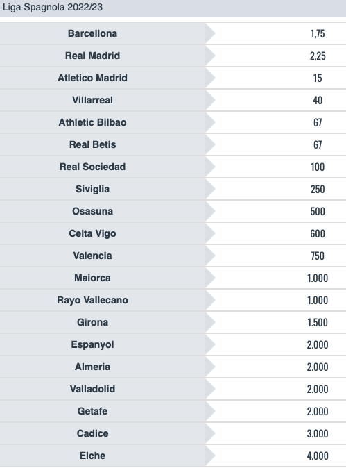 Tutte le partite e le quote del campionato di calcio spagnolo