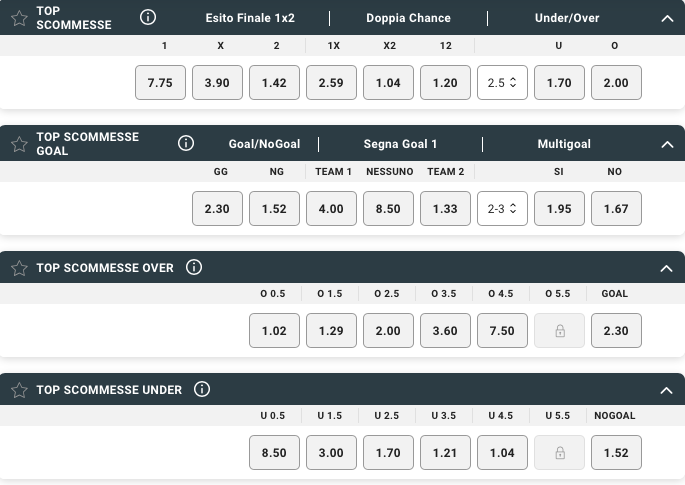 Proseguono, soprattutto in attacco, gli esperimenti del commissario tecnico azzurro, alla ricerca del numero 9 che possa rappresentare il futuro della Nazionale: anche per questo, l’Under @1,70 si fa preferire all’Over @2,05, cosi come il No Goal @1,57 parte in netto vantaggio sul Goal @2,20.