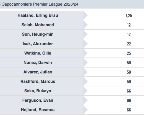 Haaland domina letteralmente le lavagne per il titolo di capocannoniere con una micro quota @1.25, e con Salah e Son primi avversari, ma lontanissimi, entrambi con quota @12 volte la posta. Insomma, nonostante qualche passo falso di troppo, i Citizens comandano sempre le lavagne del calcio inglese. Si torna il 21 ottobre dopo la sosta col big match Arsenal-Chelsea.