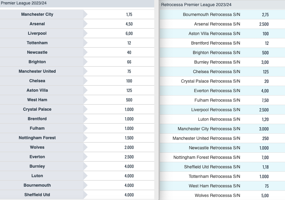Statistiche e betting trend Premier League 2023-24