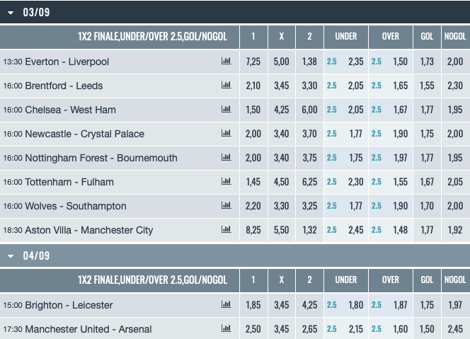 Pronostici Premier League 6a giornata 2022: Big match Manchester United-Arsenal