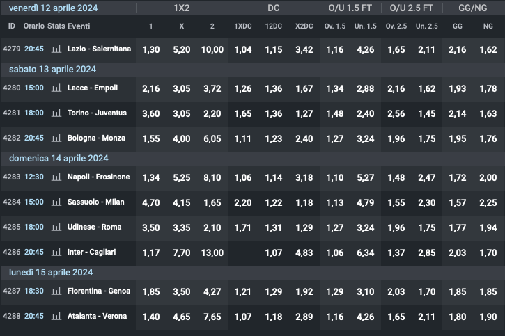 Quote e risultati Serie A 31a giornata