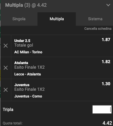 Pronostici Serie A 1a giornata: multipla quota @4.42