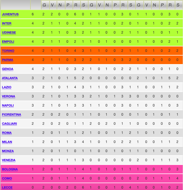Risultati 2a giornata Serie A 2024-25: la Juve vince ancora e avvicina l’Inter per lo scudetto