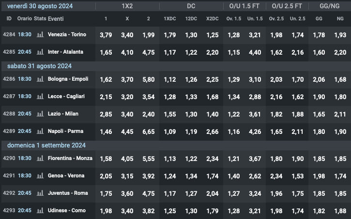 Risultati 2a giornata Serie A 2024-25: statistiche del campionato