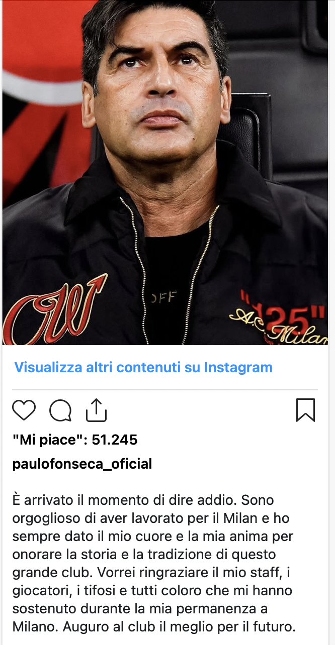 Nell’ultimo turno di campionato del 2024 succede di tutto, ad iniziare dall’esonero di Fonseca che perde la panchina del Milan. Il 2025 inizierà con una 19° giornata dal 4 gennaio senza le quattro squadre che in questi giorni sono impegnate a Rhyad per la Supercoppa Italiana. Risultati Serie A giornata 18.