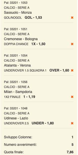 Ecco la nostra selezione di cinque partite per la multipla di Serie A in quota quasi @8 volte la posta.
