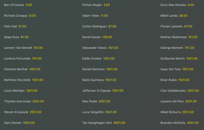 Pronostici Vuelta 2024 settimana 2: quote antepost aggiornate