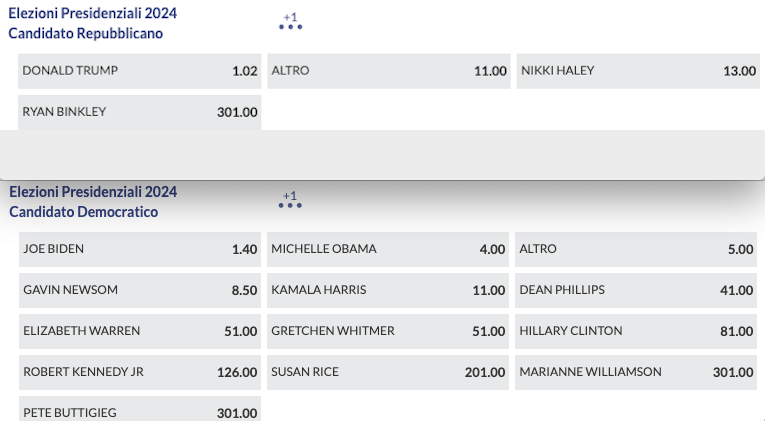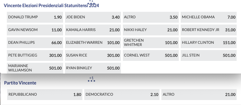 Quote Antepost: vola Trump, in difficoltà Biden