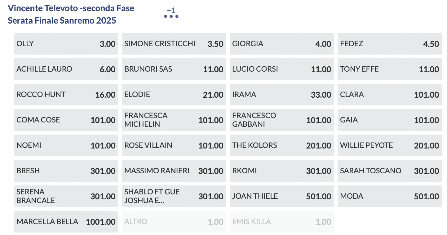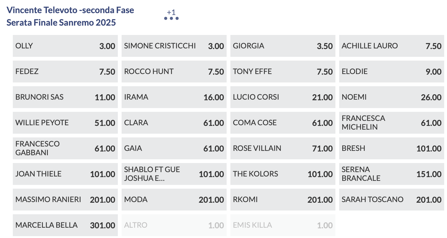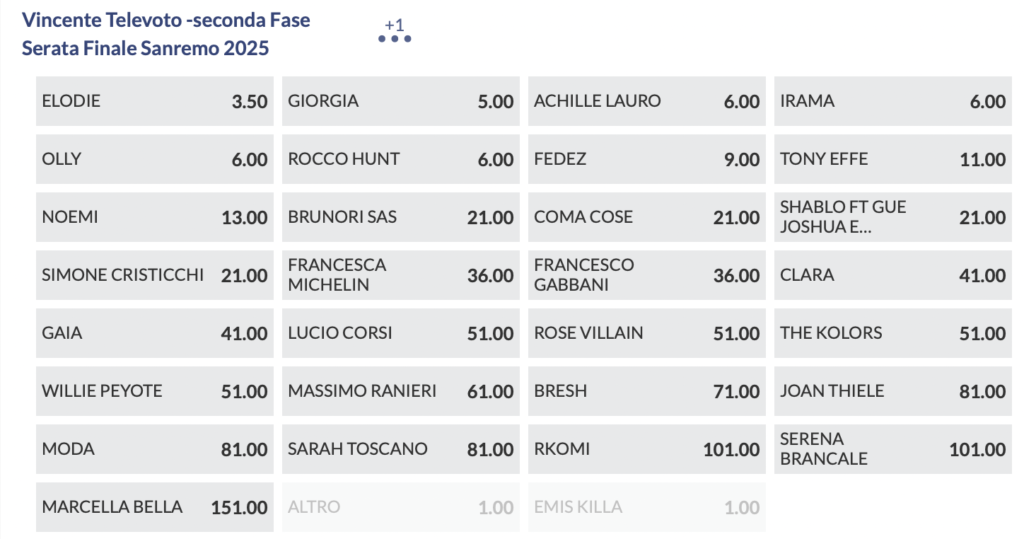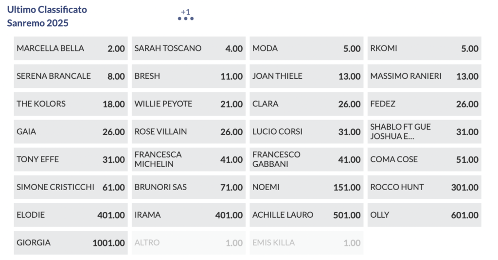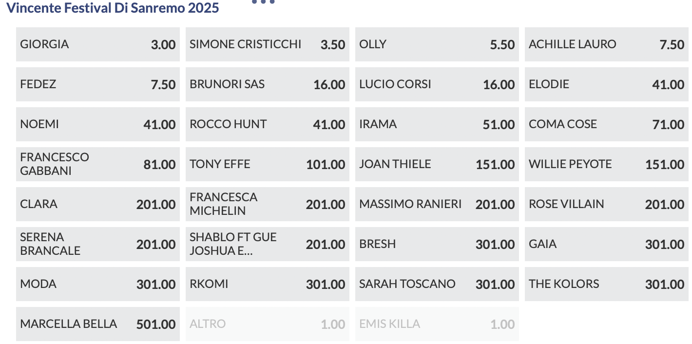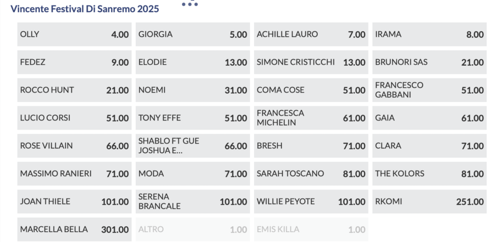 Quote antepost Sanremo 2025