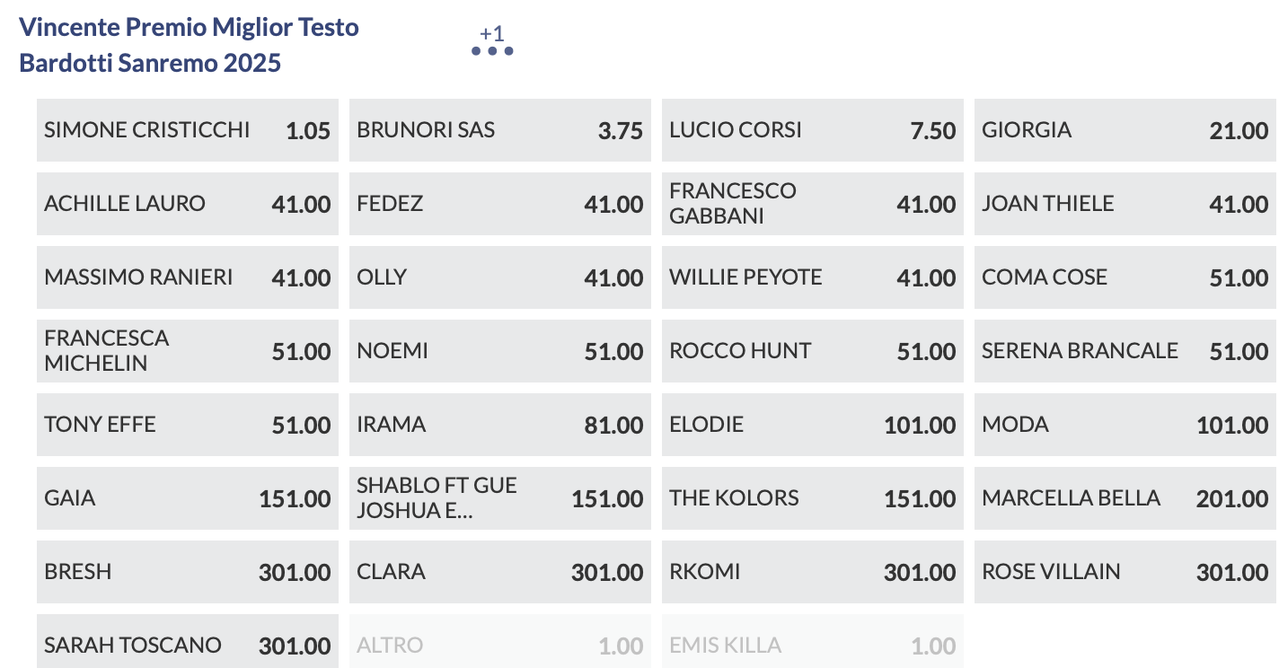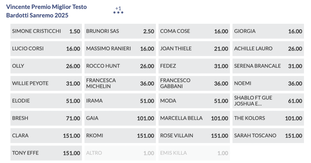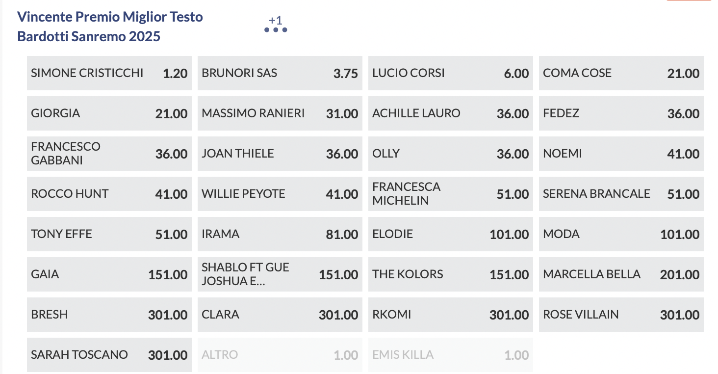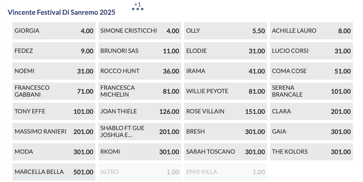 Quote antepost Sanremo 2025