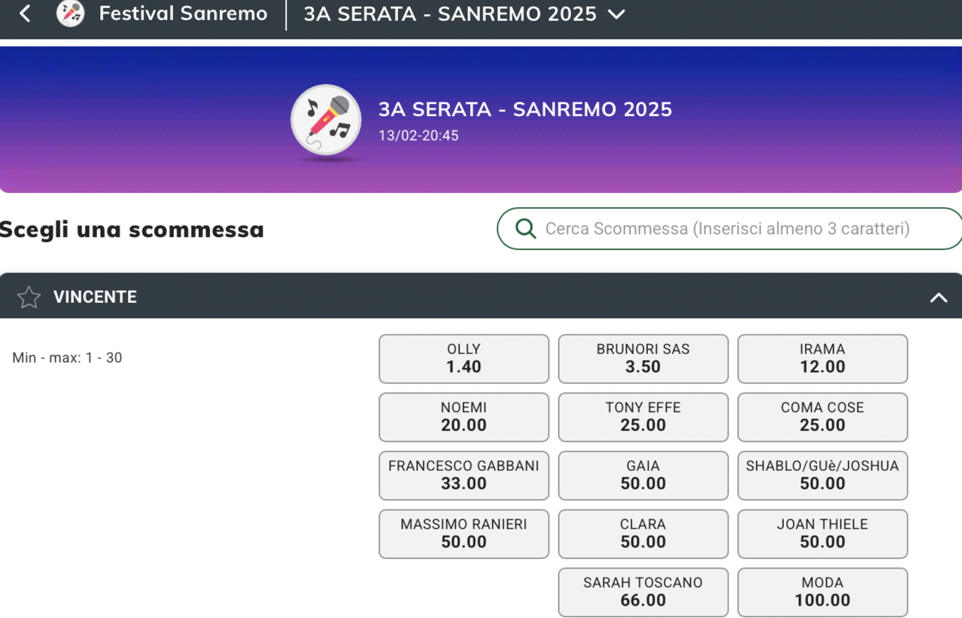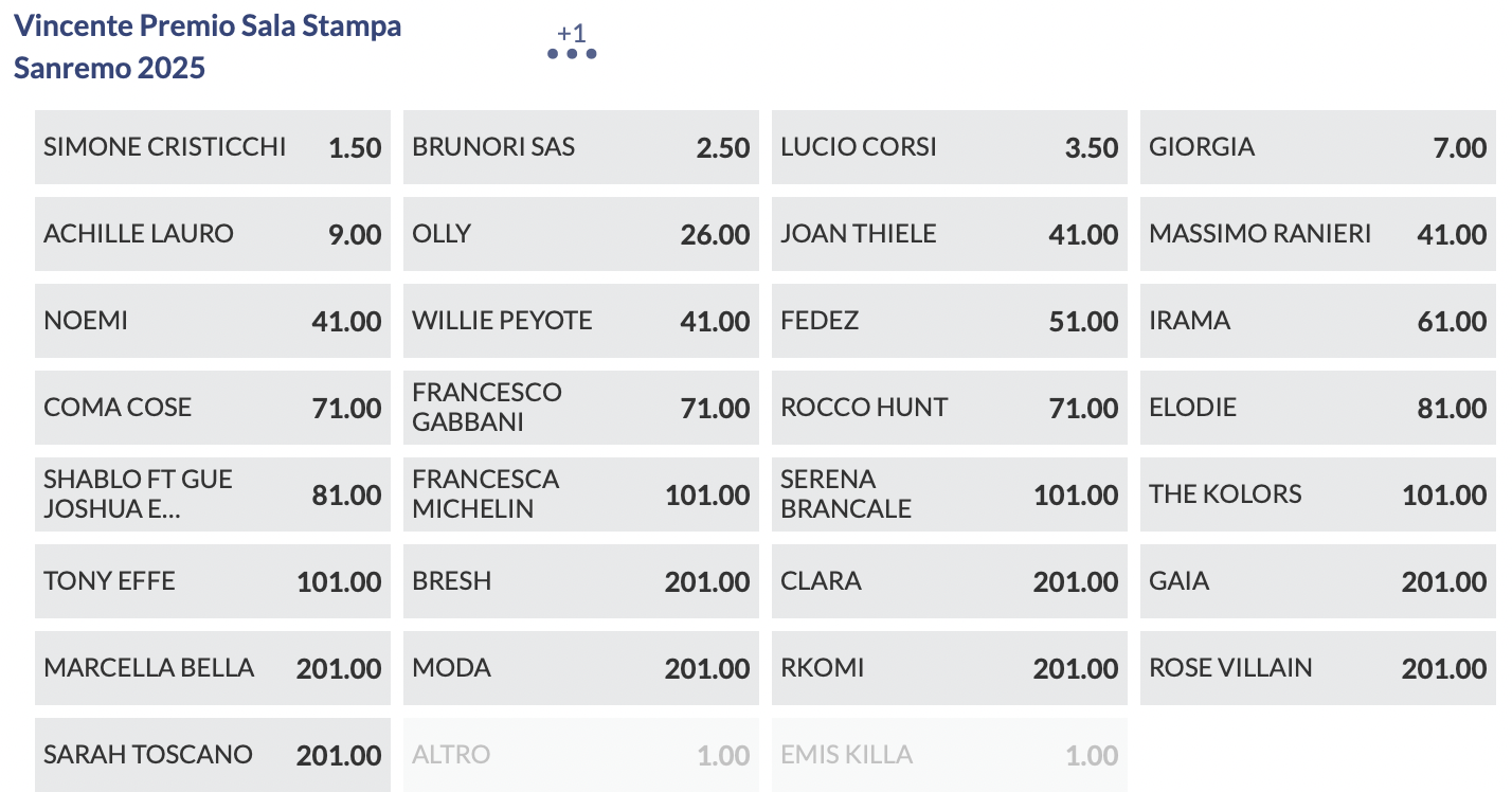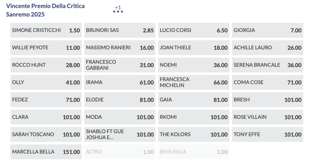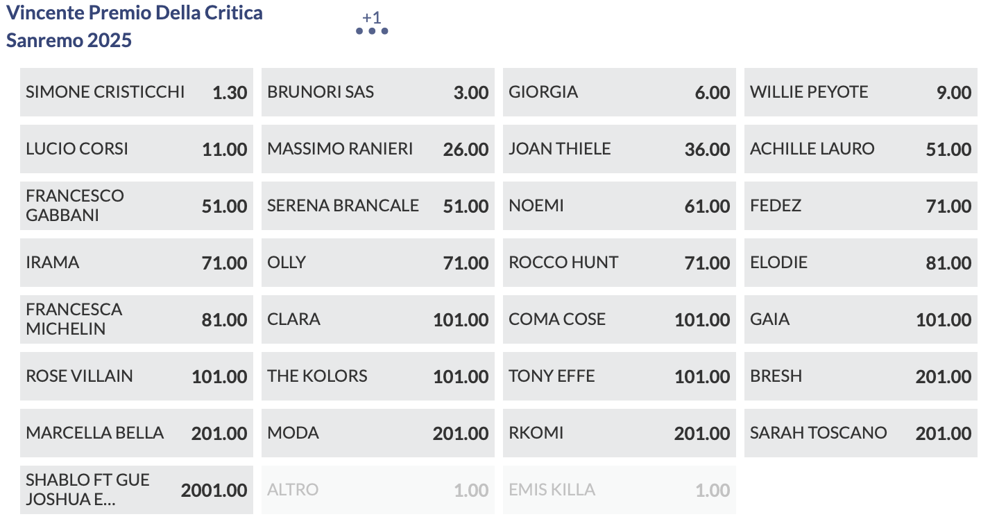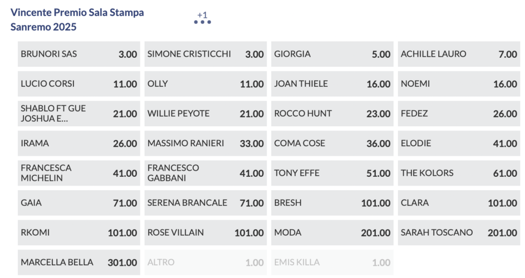 Quote antepost Sanremo 2025