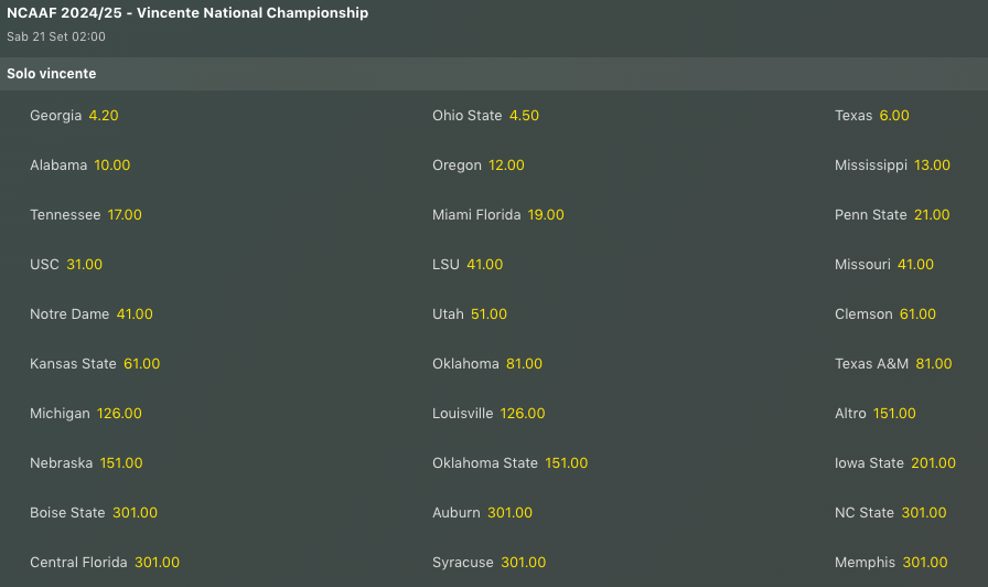 Quote Antepost NCAAF: gli ultimi aggiornamenti