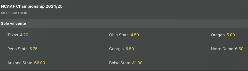 Quote antepost NCAAF: gli ultimi aggiornamenti