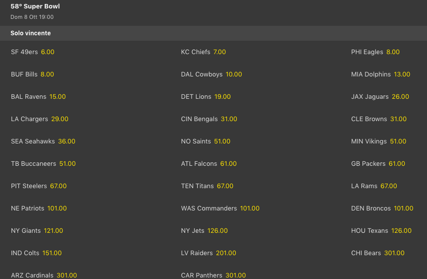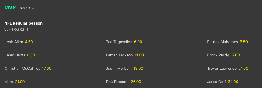 Quote Antepost: i 49ers mettono la freccia (anche Allen per MVP)