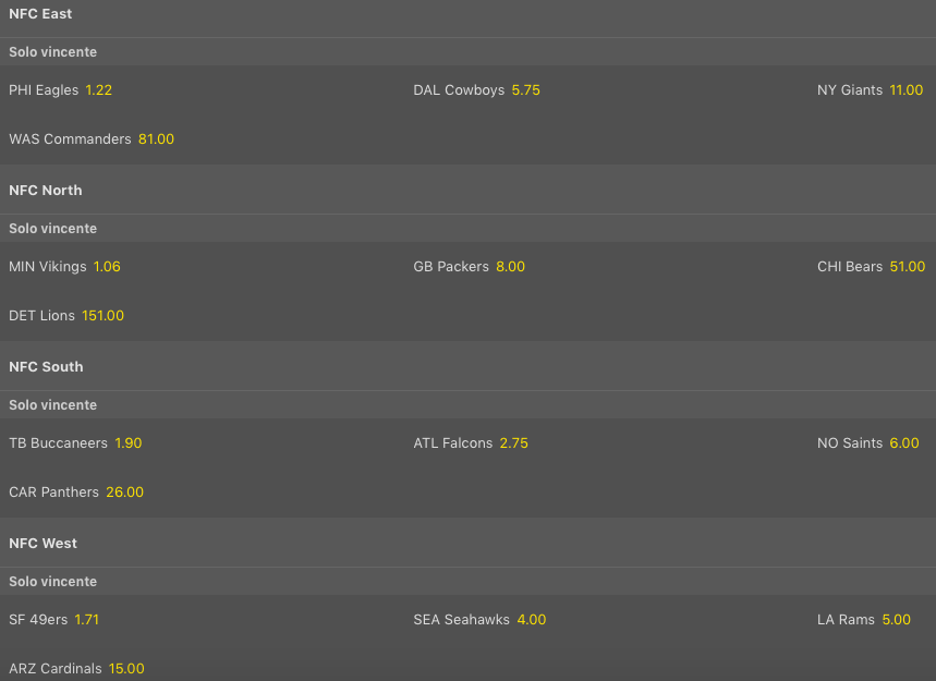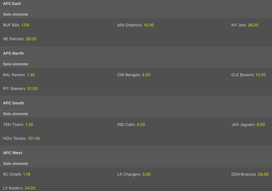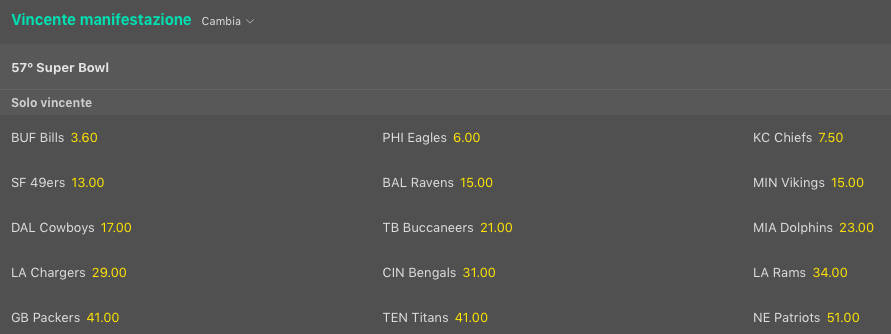 Tutte le quote sulla NFL 2022-23