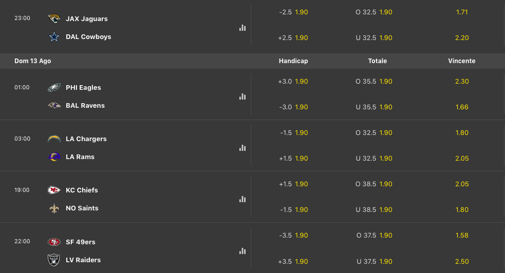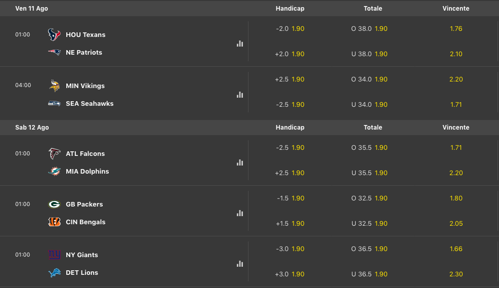 Pronostici Football Americano NFL Preseason 2023: Partite e statistiche