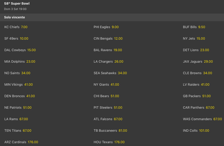 Intanto la stagione non parte sotto i migliori auspici per un paio di franchigie. Gli Indianapolis Colts hanno avuto da poco la brutta notizia di Jonathan Taylor che dopo una stagione da 4-12-1 di record per i Colts, ha richiesto la trade a Indianapolis. I NY Jets e i Miami Dolphins sono alla porta, interessati e prime franchigie anche secondo le quote dei bookmakers che però continuano a mantenere i Colts come squadra in cui rimarrà alla fine Taylor.