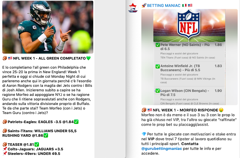 La stagione non poteva iniziare meglio con Guru che centra un all-green da 3 su 3, ed è 3 su 3 anche per Morfeo con le prop bet speciali che trovate, assieme ad analisi dettagliate e tanti consigli per le scommesse, nel nostro canale Telegram VIP BETTING MANIAC dove vi invitiamo sempre (trovate tutti i link in fondo a questo articolo).